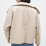 The Gwen Luxe Trenchcoat is your essential companion for the transitional season. With its modern, slightly cropped silhouette and distinctive lapel collar, it combines classic elegance with contemporary design. The double-breasted button placket and relaxed fit make it versatile for various occasions – whether for the office or a leisurely city stroll.