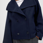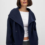 ✓ Double-breasted button placket & oversized lapel – for a modern twist