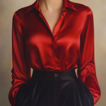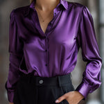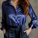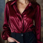 Lily | Elegant Black Satin Long Sleeves Blouse
