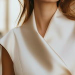 Mooyius presents the Elegant Cap Sleeve Satin Wrap Blouse with Sculpted Silhouette to elevate your sophisticated look. Embrace sleek sophistication in this asymmetrical satin blouse, featuring a sculpted wrap front secured with a single gold button. Perfect for elegant office attire or refined evenings out.