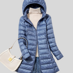 Discover Birgitta, the ultralight down jacket that combines trendy design with smart functionality. Perfect for the changing weather of autumn – a jacket that keeps you warm, dry, and comfortable without feeling heavy.