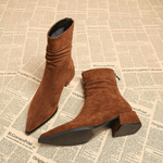 Crafted with a sleek pointed toe and soft suede finish, delivering modern style with a leg-lengthening silhouette. Featuring a low block heel and slim ankle fit, they blend everyday comfort with versatile styling for autumn through winter.