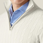 Zipped Sweater - Textured Cable Knit and Adjustable Warmth